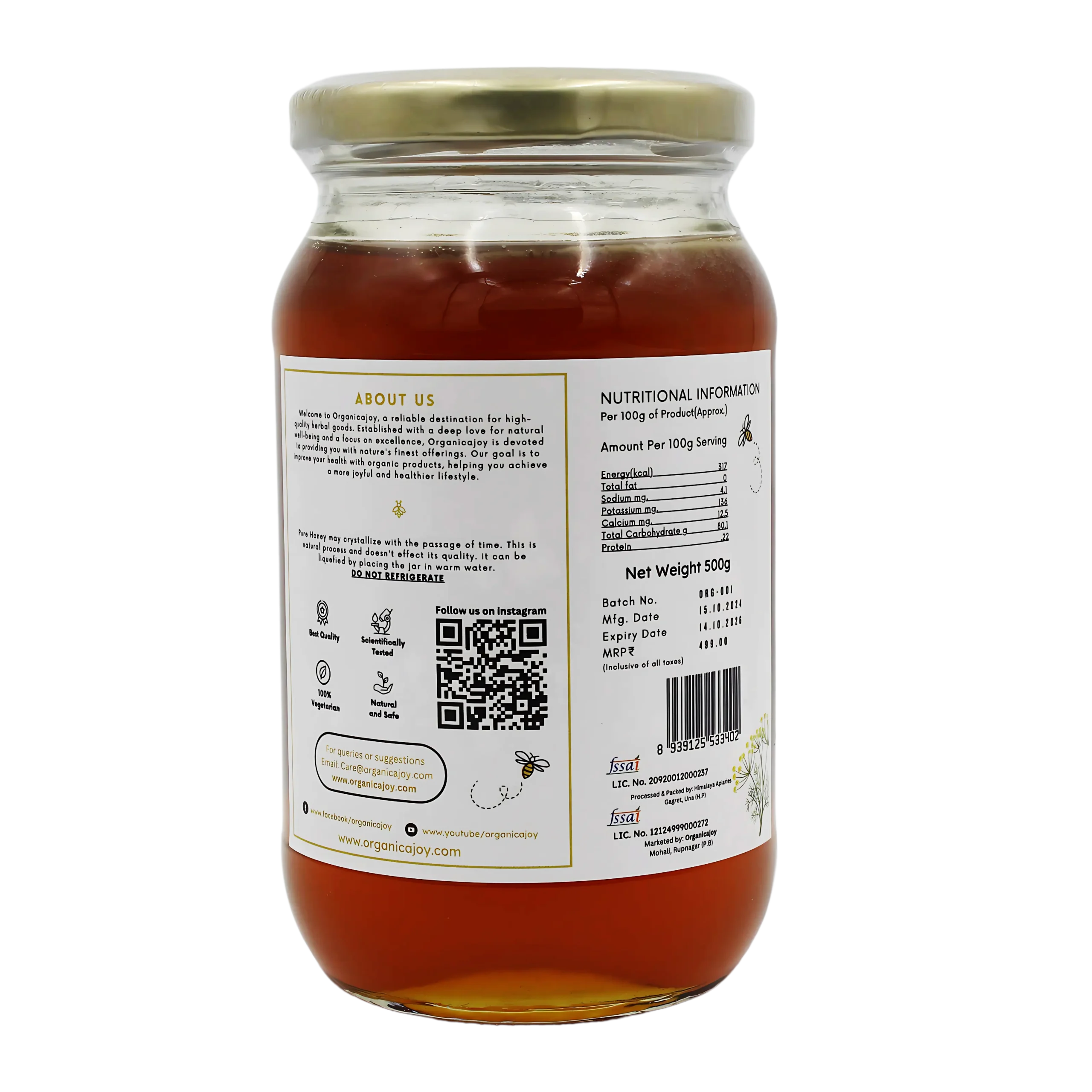At Organicajoy, we take pride in offering Natural – Fennel Honey that’s raw, unprocessed, and sustainably sourced from ethical beekeepers. Each jar retains the rich, unfiltered nutrients and the authentic flavor straight from nature’s bounty. Indulge in a jar of pure wellness with every drop of this natural treasure!