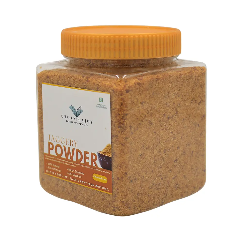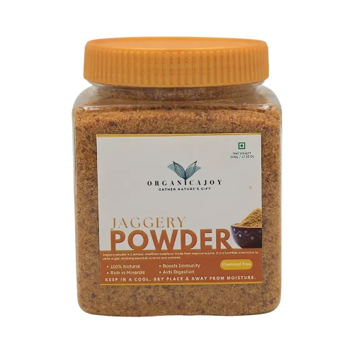 This 500g pack of organic jaggery powder, also known as gud powder, brings the authentic taste of natural sweetener to your kitchen. Perfect for traditional Indian recipes, desserts, and beverages, this versatile powder dissolves easily and adds a rich, complex sweetness along with subtle caramel notes. Unlike processed sugar, jaggery powder retains natural minerals from sugarcane juice. Use it to enhance the flavour of your morning tea, traditional Indian sweets, or as a healthier sweetening option in your daily cooking. The convenient powder form makes it easy to measure and store. This premium quality jaggery powder comes packed in a way that maintains its natural properties and distinctive aroma.