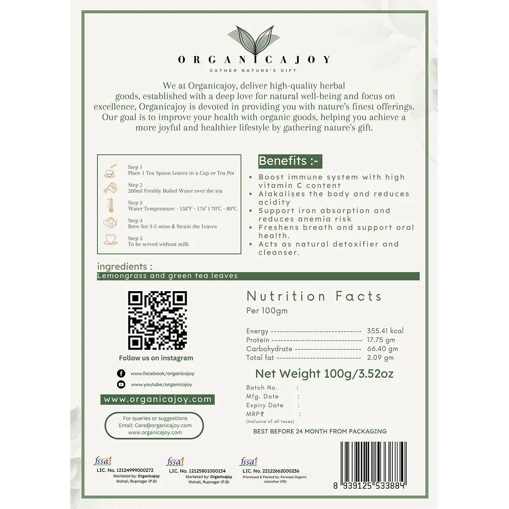 This 100-gram pack combines the refreshing properties of green tea with aromatic lemongrass, creating a delightful caffeine-free beverage. Crafted with carefully selected green tea leaves, this organic speciality tea comes in a convenient pouch packaging. Perfect as a sleep aid, this vegetarian-friendly tea requires just 2 grams per serving. Store in a cool, dry place away from direct sunlight to maintain its authentic flavour and aroma. The loose tea form allows you to adjust the strength according to your preference. Packaged in a compact size of 21x19x6 centimetres, this tea is manufactured by Parwaaz Organics in India. Simply steep and savour this harmonious blend that promises a tranquil tea-drinking experience.